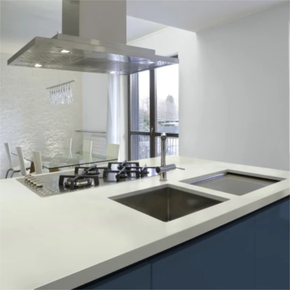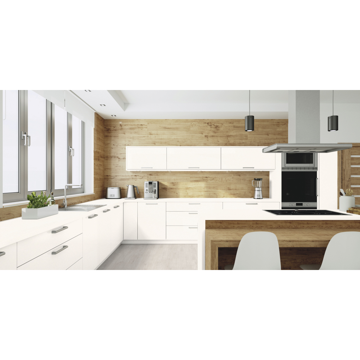 Fehér színű konyhai munkalap, elegáns és modern megjelenést kölcsönöz a konyhának. Kopás- és fényálló, így hosszú ideig megőrzi exkluzív küllemét. Foltálló, ellenáll a háztartási vegyi anyagoknak. Konyhai munkalapként történő használat mellett sokoldalúan alkalmazható, például irodákban és hobbihelyiségekben bútorgyártás felhasználásra.
