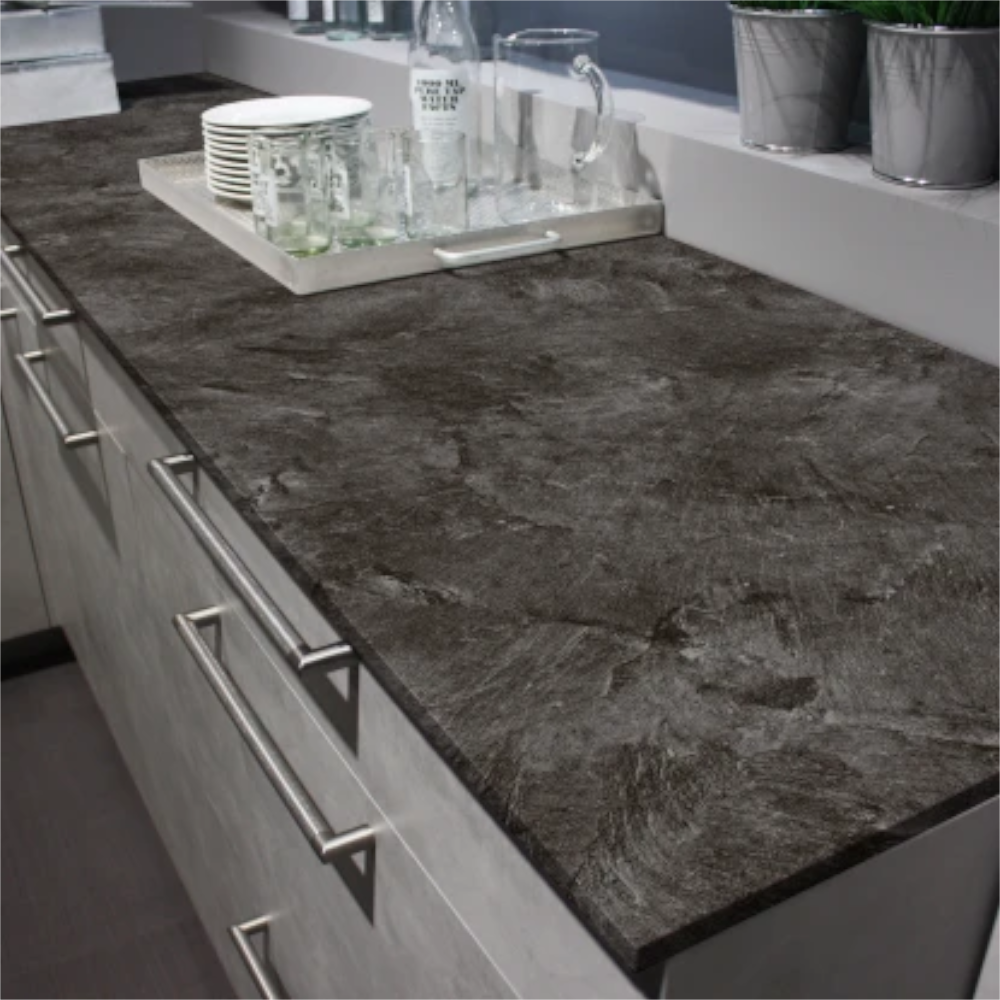 Irodákban és hobbihelyiségekben bútorgyártás felhasználásnál, például polcok, bútor burkolatok, egyéb bútoranyagok, stb.. kerülnek alkalmazásra. Palaszürke színű, ABS szegélyű munkalap, mely elegáns és modern megjelenést kölcsönöz akár a konyhának is, így tökéletes választás.