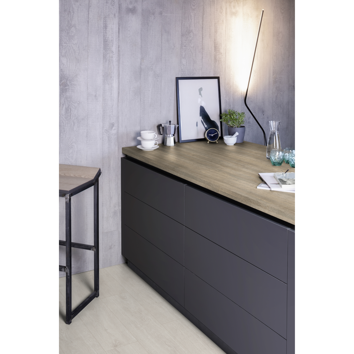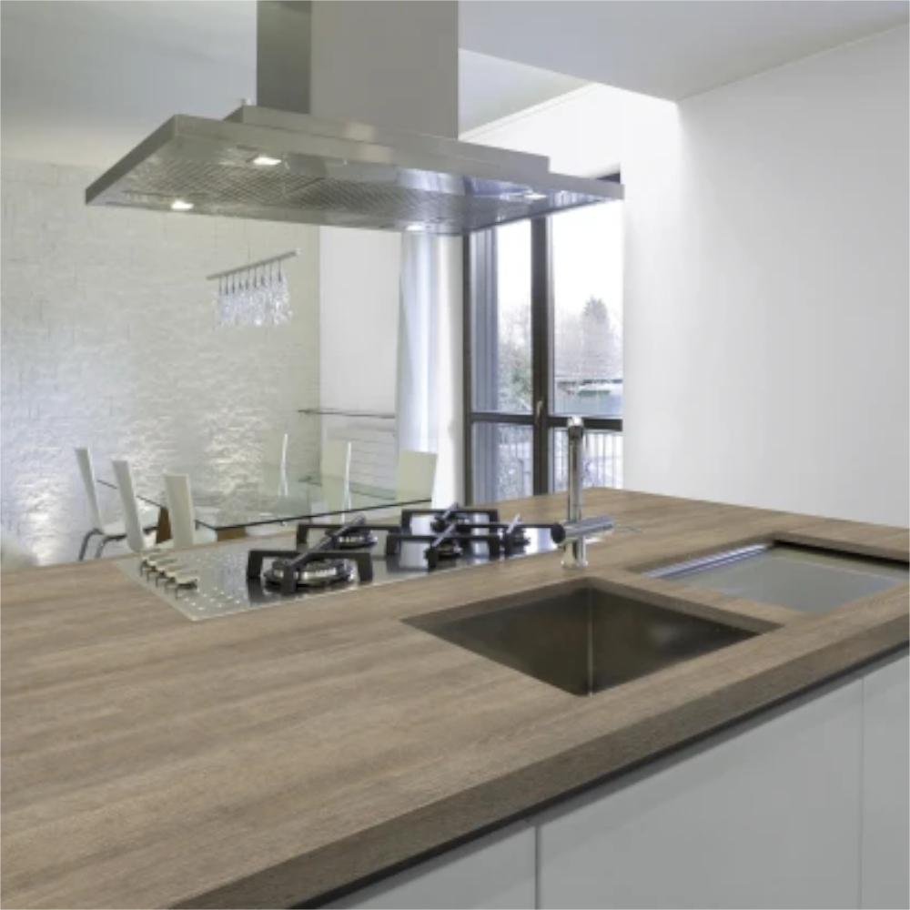 Famintázatú konyhai munkalap, elegáns és modern megjelenést kölcsönöz a konyhának. Kopás- és fényálló, így hosszú ideig megőrzi exkluzív küllemét. Foltálló, ellenáll a háztartási vegyi anyagoknak. Konyhai munkalapként történő használat mellett sokoldalúan alkalmazható, például irodákban és hobbihelyiségekben bútorgyártás felhasználásra.