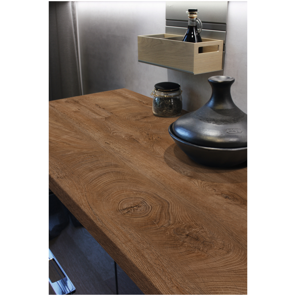 A Kaindl Endgrain Cognac Tölgy munkalap karakteres, prémium megjelenést ad a konyhának és az enteriőrnek. A vágott tölgyfa (endgrain) hatású dekor mély, meleg konyakbarna árnyalataival természetes, mégis modern összhatást teremt. A 38 mm vastag kivitel és a strapabíró ABS élzárás nemcsak esztétikus, hanem kifejezetten ellenálló megoldást kínál a mindennapi használathoz.