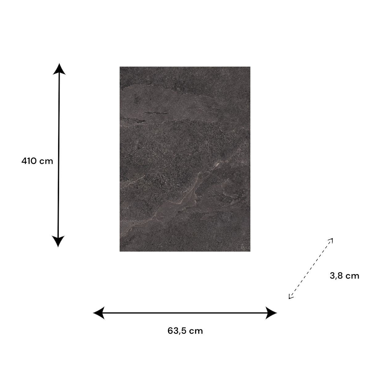A Palaszürke Vulcano munkalap 4100×635×38 mm méretben modern, karakteres megjelenést kínál konyhák és egyéb belső terek számára. A természetes pala hatását idéző, sötétszürke árnyalat időtálló stílust képvisel, míg a Kaindl minőségi alapanyagai garantálják a hosszú élettartamot. A körbefutó ABS él nemcsak esztétikus lezárást ad, hanem fokozott védelmet is biztosít a mindennapi igénybevétellel szemben.