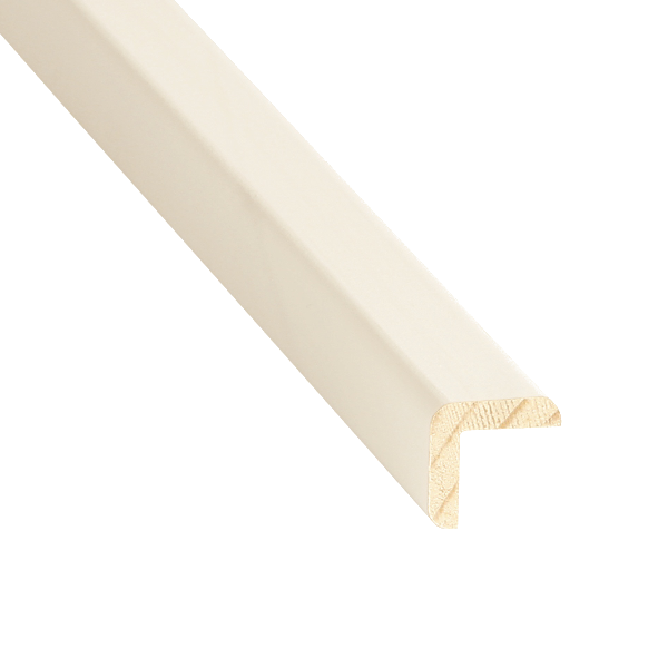 Fehér alapozott derékszögű takaróléc. Beltéri dekorációs, barkácsolás felhasználásra, az időjárás viszontagságaitól óvni kell, nem vízálló.