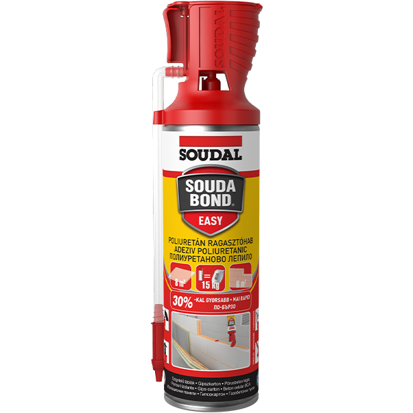 A Soudabond EASY egy kiváló teljesítményű poliuretán ragasztóhab. Gyorsan, könnyen használható, használatra kész, helyettesíti a hagyományos poralapú ragasztókat. Ez a készítmény kombinálja az erős tapadást a réskitöltő sajátosságokkal, így alkalmas egyenetlen felületek ragasztására. Szinte minden építőanyag, például szigetelőlapok és gipszkarton ragasztására, valamint belső falak készítésére használható könnyű falazóelemekből. A Genius Gun® egy szabadalmaztatott, könnyű egykezes használatra tervezett fej. Visszazárható, ezzel lehetővé teszi, hogy a terméket az első használat után 6 héten belül újra lehessen használni.