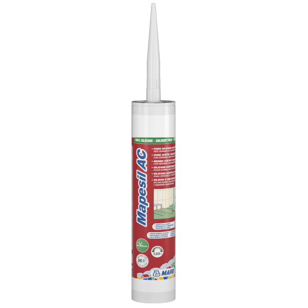 A Mapesil AC alkalmas a névleges hézagmérethez képest ± 25% elmozdulású hézagok kitöltésére, tökéletesen rugalmas hézagkitöltés kialakítására különböző elemek között az építőiparban, gépiparban, hajóépítésnél, autóiparban stb. Néhány alkalmazási példa: Kerámia és beton fal- és padlóburkolatok hézagainak kitöltése erős koptatóhatásnak nem kitett felületeken. Mosogatótálcák, szaniterek és a kerámiaburkolatok közötti hézagok kitöltése, konyhákban, fürdőszobákban. Mozgási hézagok kitöltése úszómedencékben. Művészi színes üvegablakok és üveglapok kompozíciós összeállítása. Ajtó- és ablakkeretek üvegezéseinek tömítése. Légkondicionálás vezetékei, vízcsövek stb. hézagainak kitöltése. Búvónyílások, ablakok, üvegezett keretek stb. hézagainak kitöltése. Tartályok, bekötőcsövek és bojlerek hézagainak kitöltése. Eltérő hőtágulási együtthatójú anyagok hézagainak kitöltése. Általános felhasználású ragasztó és hézagkitöltő-anyag. A Mapesil AC egykomponensű, ecetsavas, oldószermentes szilikon hézagkitöltő-anyag. Állékony paszta, könnyen felhordható vízszintes és függőleges felületekre. A levegő nedvességtartalmának hatására köt meg normál hőmérsékleten. Jellemzői: kitűnő tartósság; nagymértékű rugalmasság; kitűnő tapadás üvegre, kerámiára és eloxált alumíniumra; penészálló; vízzáró és páraáteresztő; vegyszerálló; -40°C-ig rugalmas és +180°C-os hőmérsékletet is elvisel. A hézagkitöltés sok éven keresztül szélsőséges időjárásának, ipari mértékű szennyezésnek, hirtelen hőmérséklet-változásoknak kitéve vagy vízbe merítve is változatlan marad. Az MSZ EN ISO 11600 szabvány alapján az F-25-LM osztályba sorolt; az MSZ EN 15651-1, MSZ EN 15651-2, MSZ EN 15651-3 szabványoknak megfelel és CE-jeles termék.