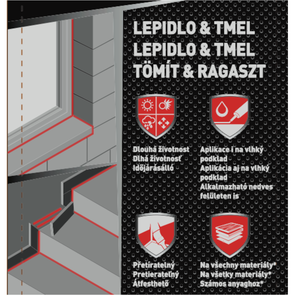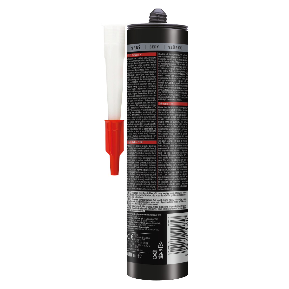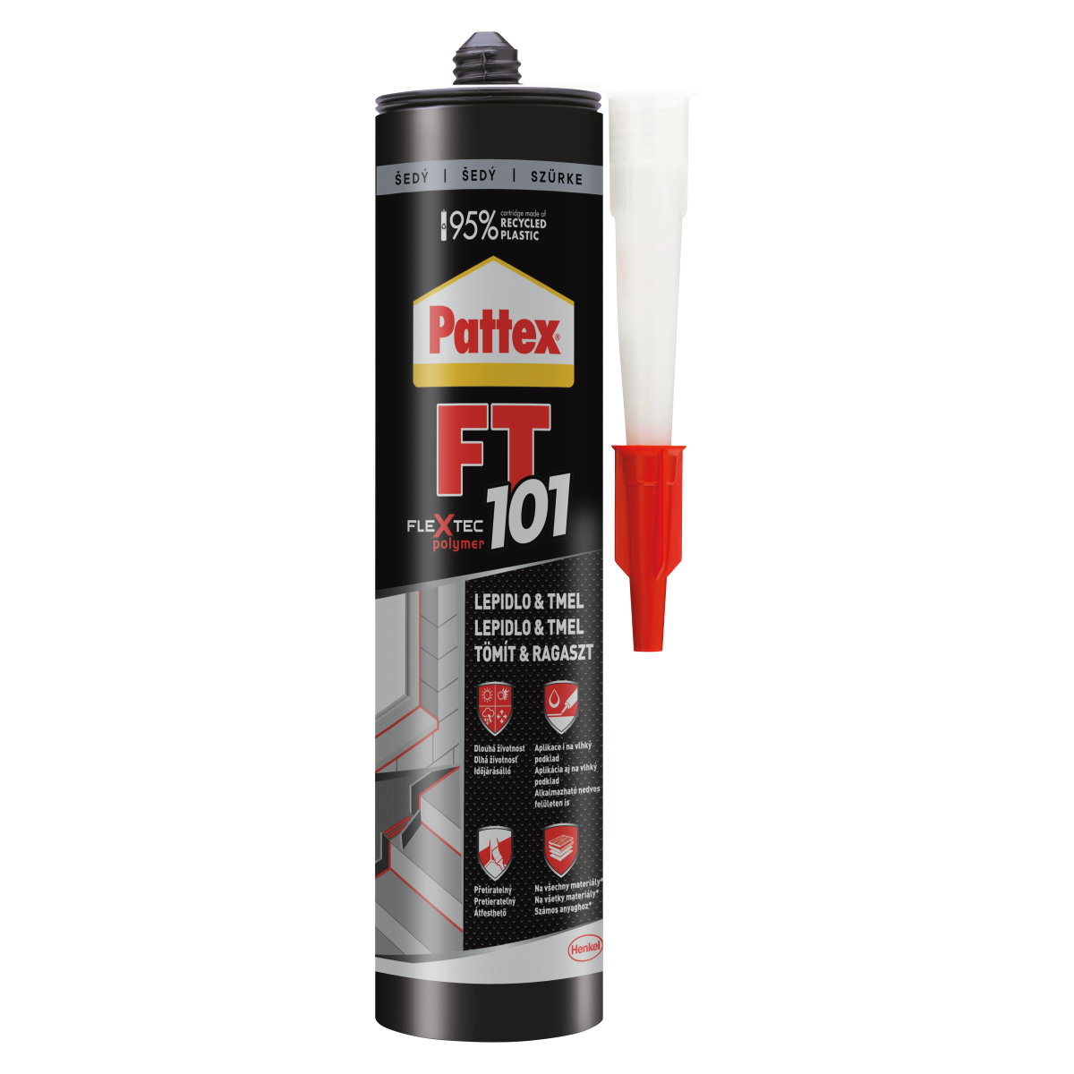 A PATTEX FT101 MS-polimer tömítő és ragasztó erős kezdeti tapadással. Rendkívül rugalmas és alapozás nélkül is kiválóan tapad csaknem valamennyi anyaghoz, fémhez (pl. alumínium), fához, műanyaghoz stb. Alkalmazható természetes kövekhez (pl. márvány), tükör ragasztására, valamint nedves felületen és alacsony hőmérsékleten is (+5°C felett). Kötés utáni hőállósága -30°C és +80°C között. Nem zsugorodik, oldószer-, izocianát- és szilikonmentes. UV-, öregedés-, ütés- és rezgésálló, nem korrodál. Képes helyettesíteni minden más tömítőt (akril, szilikon, poliuretán). Nem tapad: PE, PP és teflonhoz. Akár 20 mm-es hézagokhoz is.