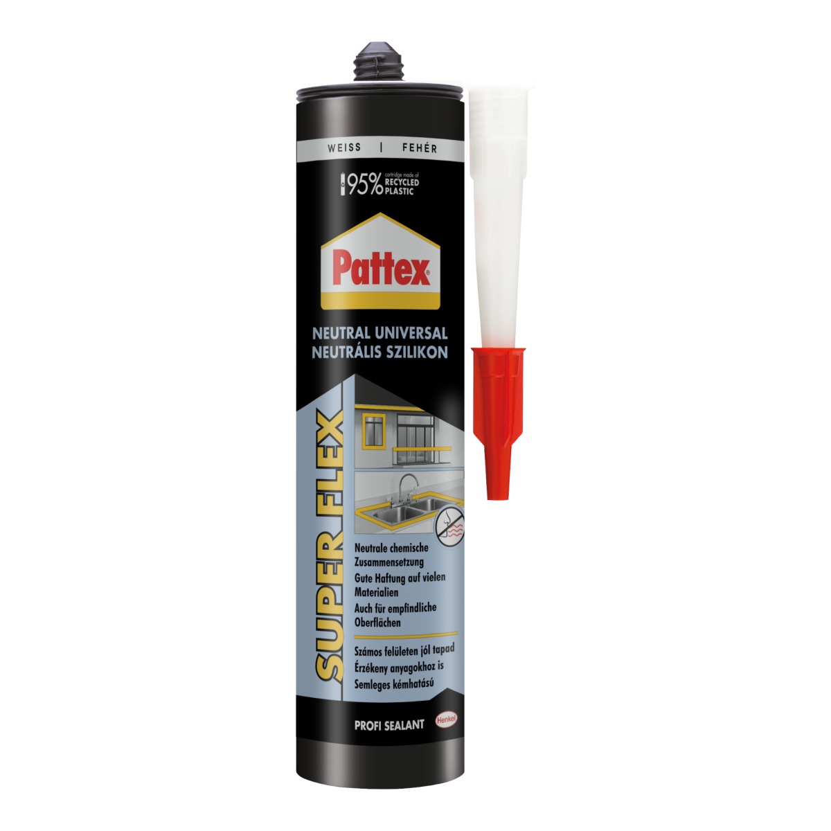 A Pattex neutrális szilikon egykomponensű, felhasználásra kész szigetelő- és tömítőanyag, amely a levegő nedvességének hatására köt meg. A speciális adalékok segítenek megelőzni a gombák megtelepedését, így alkalmas nedves környezetben történő használatra is.