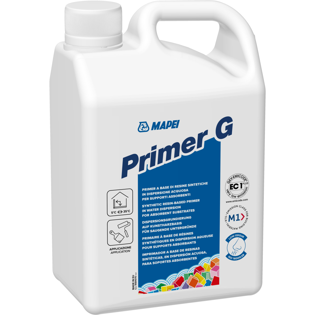 Primer G alapozó 1 kg-os kiszerelésben, világoskék színben. Műgyanta bázisú diszperziós alapozó gipsz felületek kezelésére kerámia burkolólapok rögzítése előtt. Felhasználható tapadóhídként gipsz bázisú szórható vakolatokhoz, kiegyenlítő-habarcsok tapadásának javítására cementkötésű-, gipsz-, aszfalt-, kerámia- és márványfelületeken, cementkötésű és gipszfelületek nedvszívó-képességének egyenletessé tételére. Nagyon alacsony illékony szervesanyag (VOC) kibocsátás jellemzi. Bedolgozási hőmérséklettartomány: +5-35°C. Száradási idő: 2 óra, a hígítástól és az aljzat nedvszívó-képességétől függően. Anyagszükséglet: 0,1-0,2 kg/m2 a használattól függően.