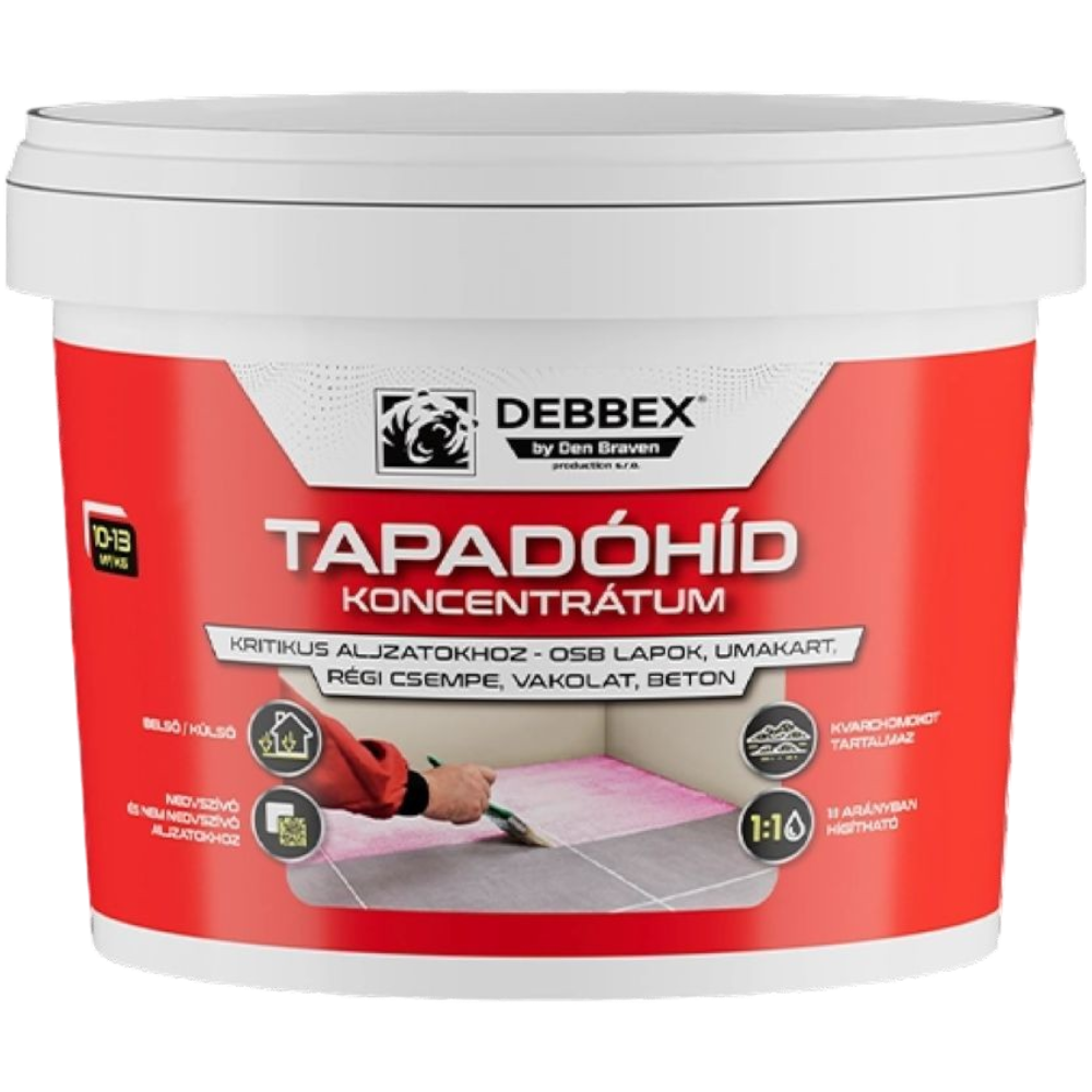 Tapadóhíd 5kg. Kritikus aljzatokra - OSB lemez, műanyag laminátum. Javítja a további rétegek tapadását. Régi csempére, és burkoló lapra, nem szerkezeti betonra, vakolatra.