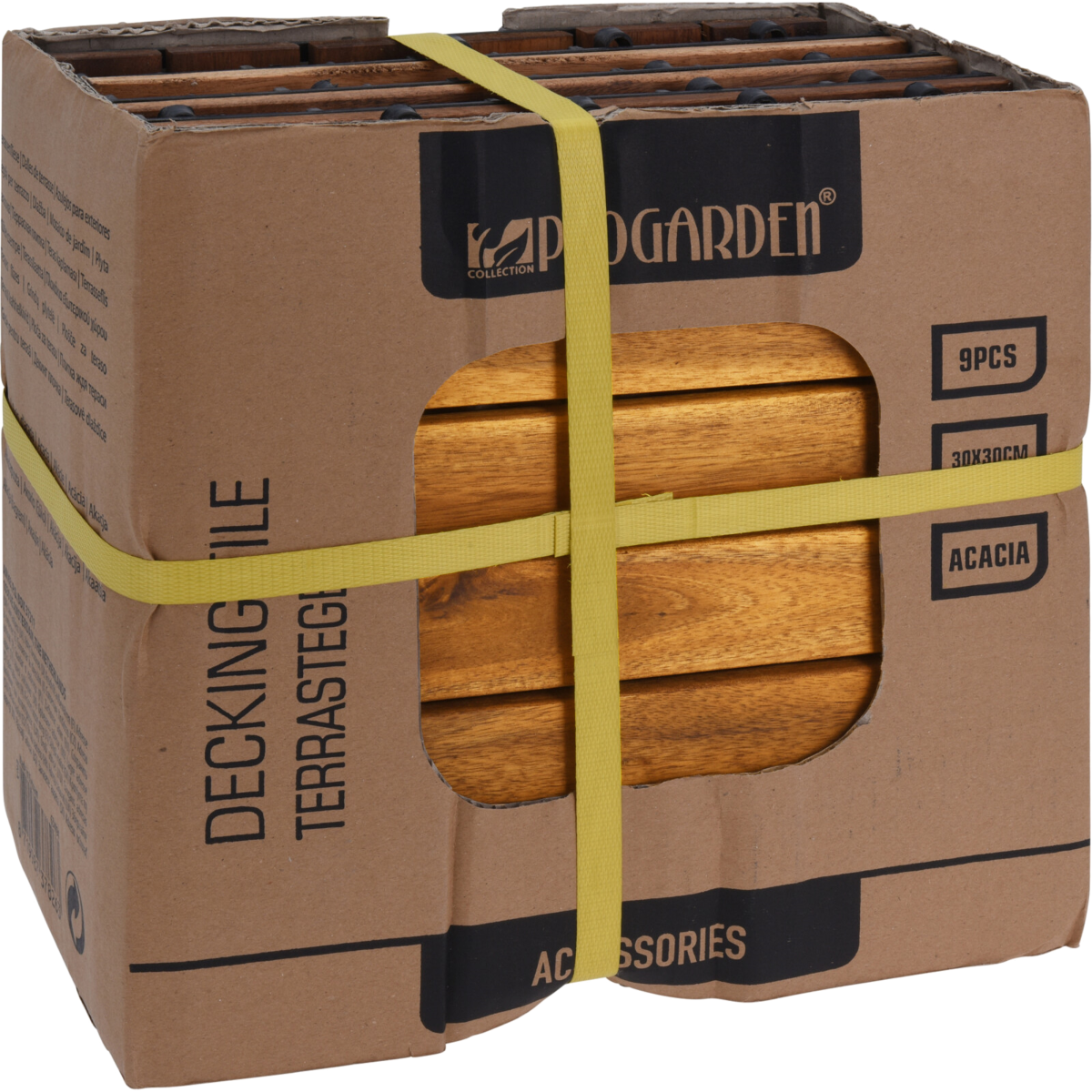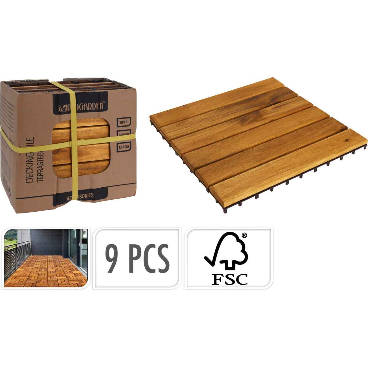 Akácfa kültéri padlóburkolat szezonális kültéri használatra. Mérete 30x30x5cm. Kemény, egyenletes felületekre, mint betonra, kőre és fára javasolt a használata. A lapok oldalán elhelyezett illesztőkapcsoknak köszönhetően a telepítésük egyszerű és gyors. Egy lapot hat darab akácfa léc alkot. A lapok víz alapú fapáccal vannak előkezelve, melyek a használat során újrapácolást igényelnek. Az újrapácolás elvégezhető bármilyen vizes alapú fapáccal.