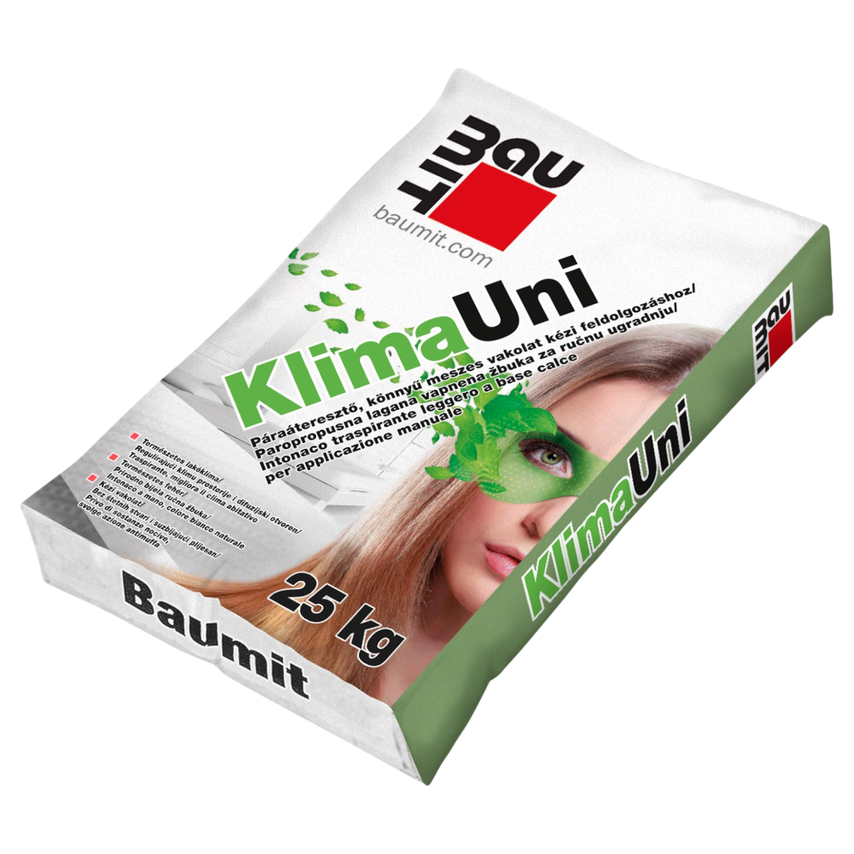 A Baumit Klima Uni kézi vakolat páraáteresztő, természetesen fehér, meszes könnyűvakolat beltéri használatra. A mikropórusos szerkezet segíti a páratartalom szabályozását, így hozzájárul az egészségesebb lakóklímához – akár vizes helyiségekben is. Kézi feldolgozásra lett kifejlesztve, dörzsölt felület kialakításához.