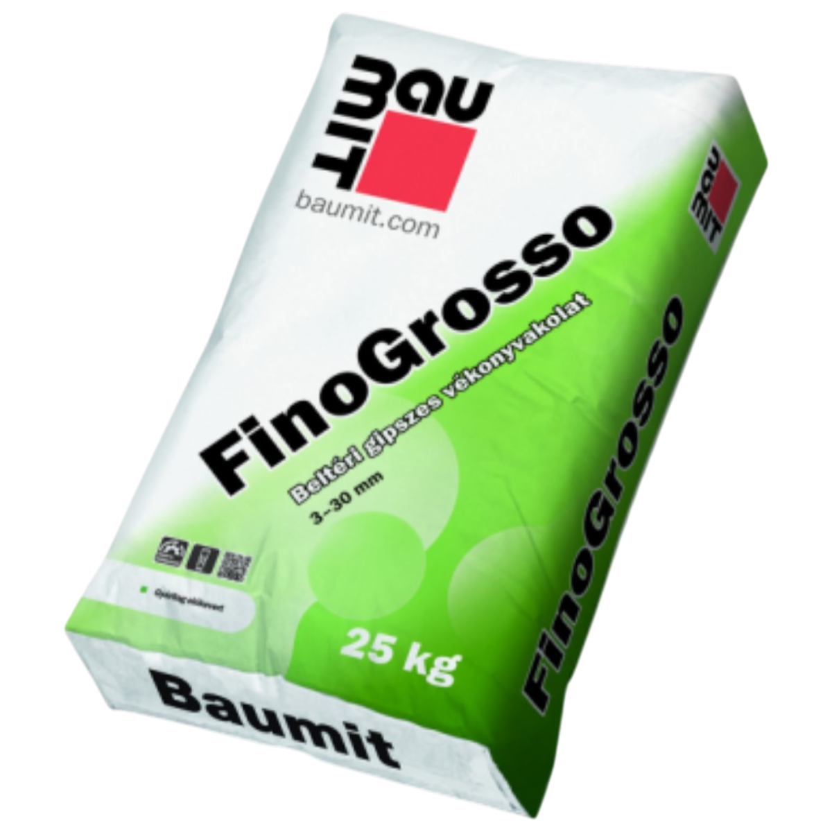 A Baumit Fino Grosso megbízható választás, ha tartós, sima és esztétikus beltéri vakolatot szeretne kialakítani akár kézi, akár gépi feldolgozással. 📦