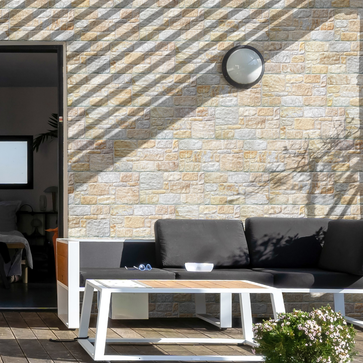 A Chateau kőhatású bézs fagyálló gres falburkoló kiváló választás, ha stílusos, természetes hatású és hosszú távon is megbízható falburkolatot szeretnél otthonodba vagy kültéri tereidbe.
