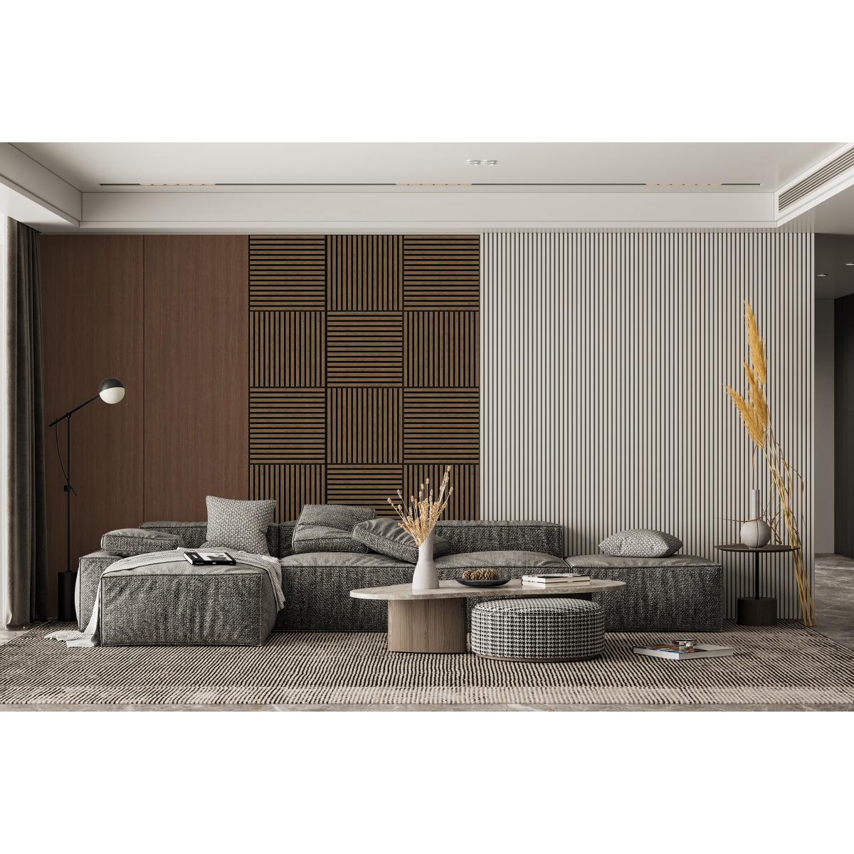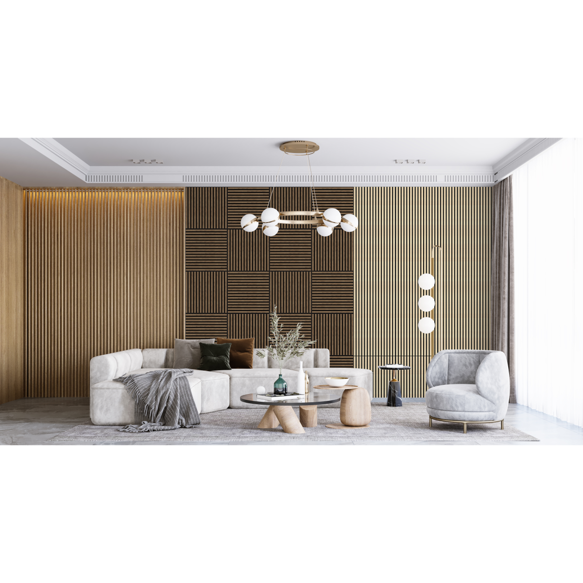 A 60×60 cm méretű akusztikus falipanel hatékony megoldás otthoni vagy irodai terek akusztikájának javítására. A hő- és hangszigetelő filcréteg tompítja a zajokat, miközben meleg és modern hangulatot kölcsönöz a helyiségnek. Falra és mennyezetre egyaránt rögzíthető, esztétikai szerepe mellett jelentősen javítja a tér atmoszféráját is. A panelek teljesen lefedik a falakat, így nincs szükség speciális előkészületekre – többféle módon, az elemek egymáshoz képest elforgatva is rögzíthetők, aminek köszönhetően a beépítés gyors és kényelmes. Ideális választás, ha modern, harmonikus környezetet szeretnél kialakítani.