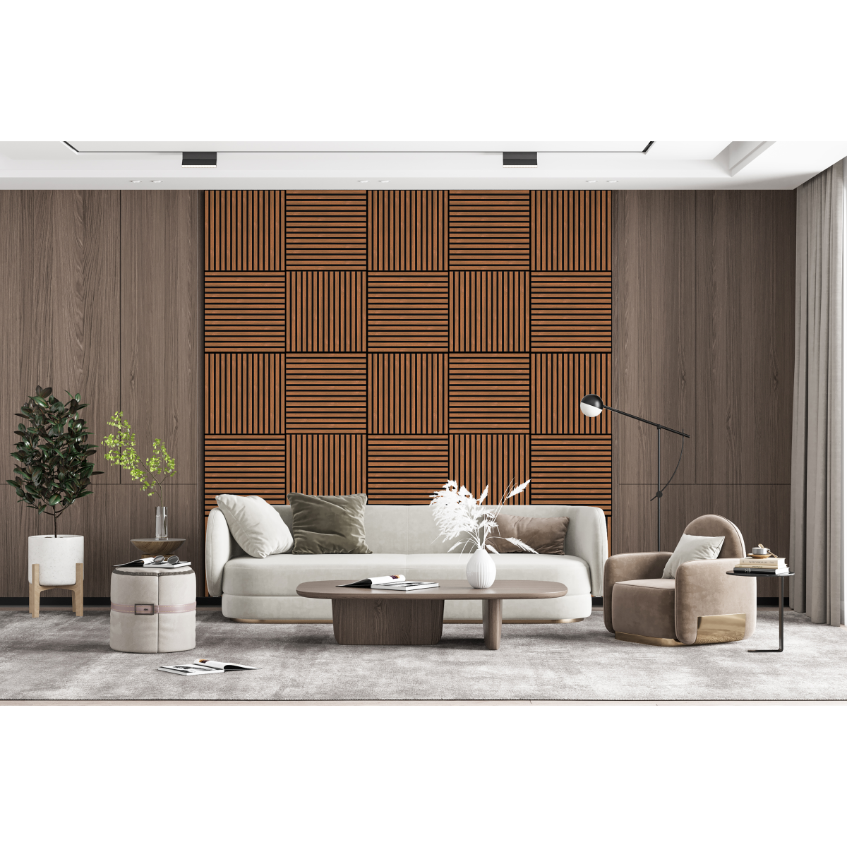 Akusztikus falipanel hang és hőszigetelő filcréteggel 60x60cm teak szín