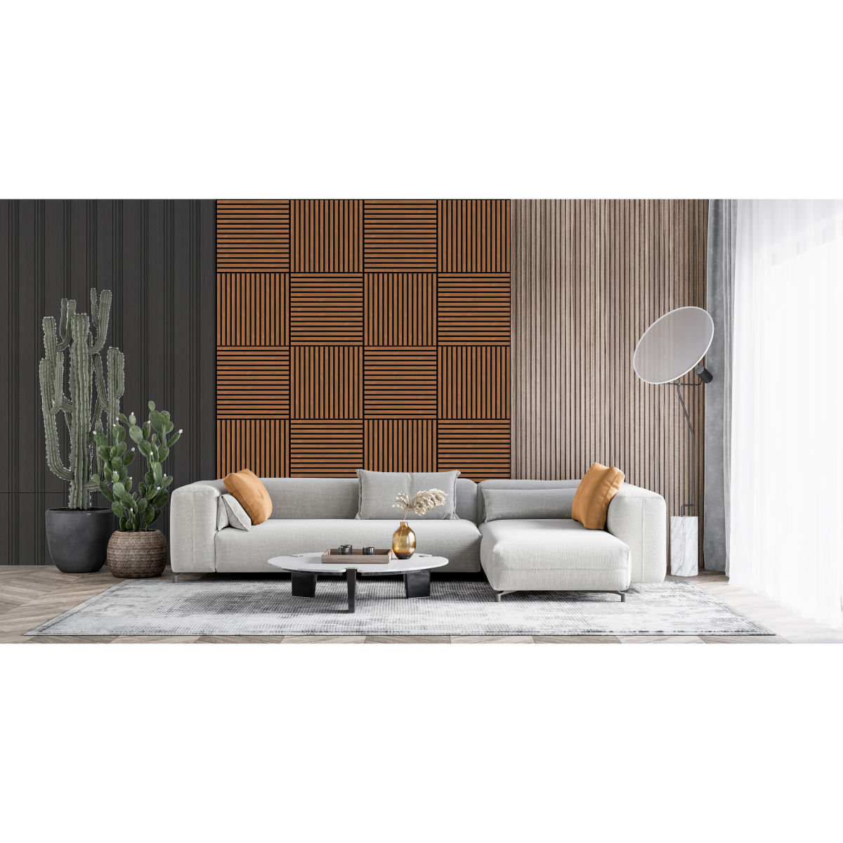 A 60×60 cm méretű akusztikus falipanel hatékony megoldás otthoni vagy irodai terek akusztikájának javítására. A hő- és hangszigetelő filcréteg tompítja a zajokat, miközben meleg és modern hangulatot kölcsönöz a helyiségnek. Falra és mennyezetre egyaránt rögzíthető, esztétikai szerepe mellett jelentősen javítja a tér atmoszféráját is. A panelek teljesen lefedik a falakat, így nincs szükség speciális előkészületekre – többféle módon, az elemek egymáshoz képest elforgatva is rögzíthetők, aminek köszönhetően a beépítés gyors és kényelmes. Ideális választás, ha modern, harmonikus környezetet szeretnél kialakítani.