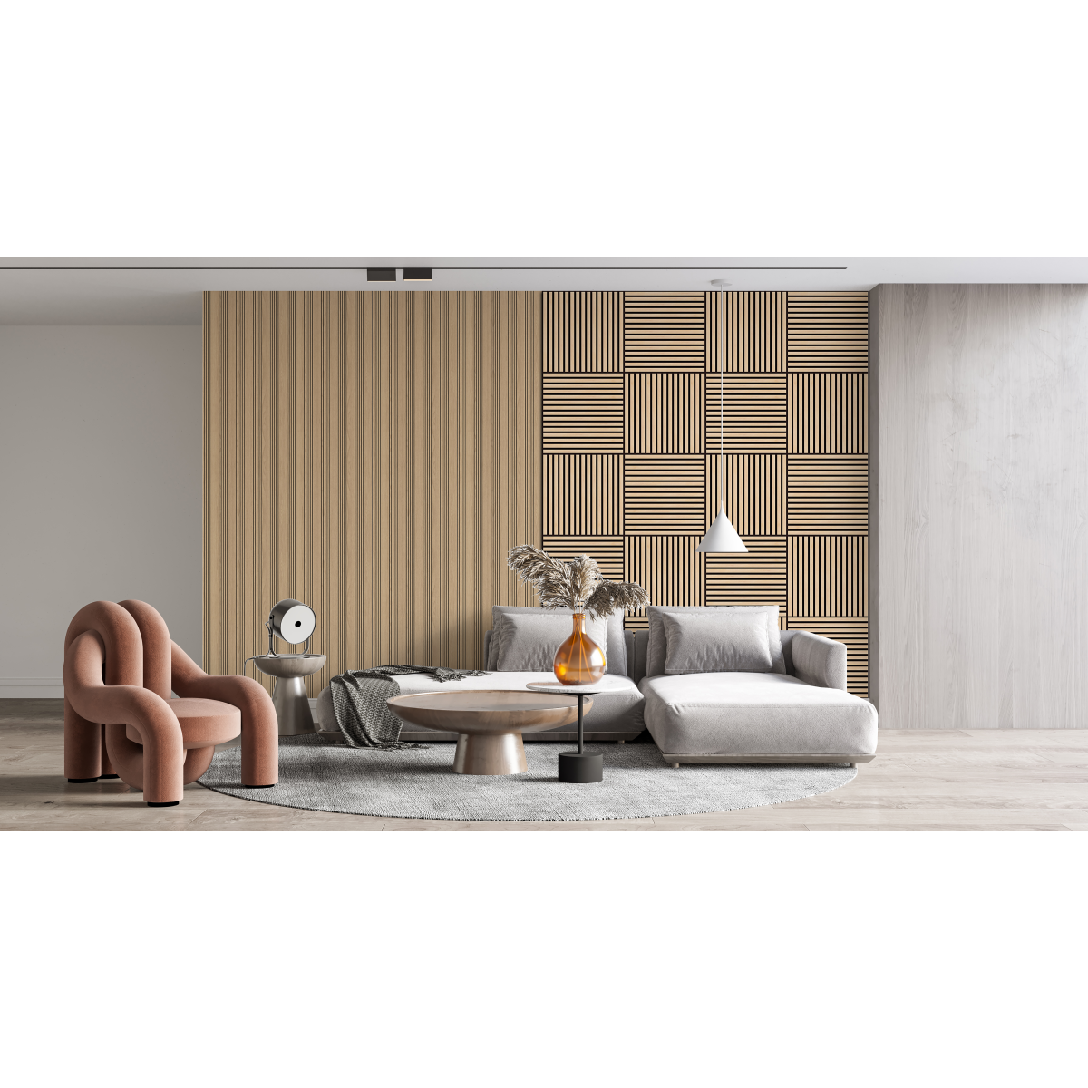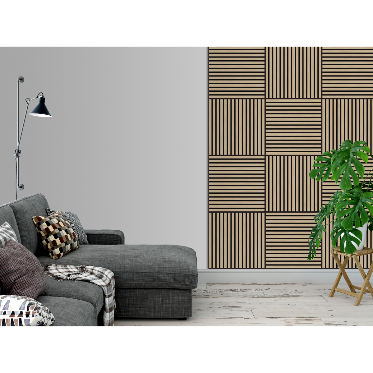 A 60×60 cm méretű akusztikus falipanel hatékony megoldás otthoni vagy irodai terek akusztikájának javítására. A hő- és hangszigetelő filcréteg tompítja a zajokat, miközben meleg és modern hangulatot kölcsönöz a helyiségnek. Falra és mennyezetre egyaránt rögzíthető, esztétikai szerepe mellett jelentősen javítja a tér atmoszféráját is. A panelek teljesen lefedik a falakat, így nincs szükség speciális előkészületekre – többféle módon, az elemek egymáshoz képest elforgatva is rögzíthetők, aminek köszönhetően a beépítés gyors és kényelmes. Ideális választás, ha modern, harmonikus környezetet szeretnél kialakítani.