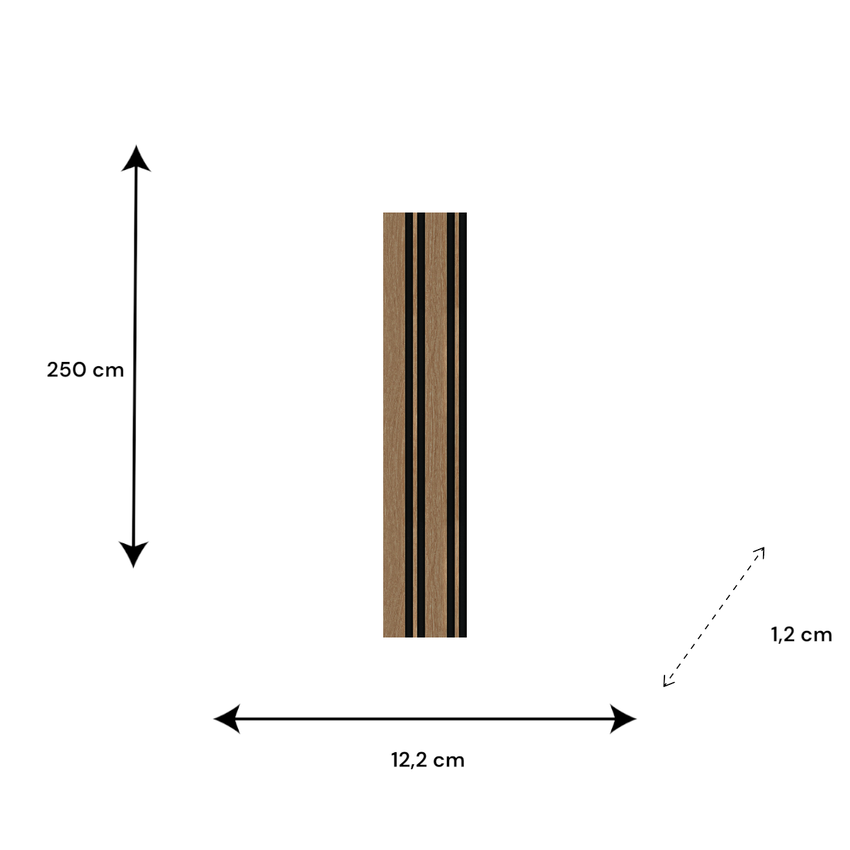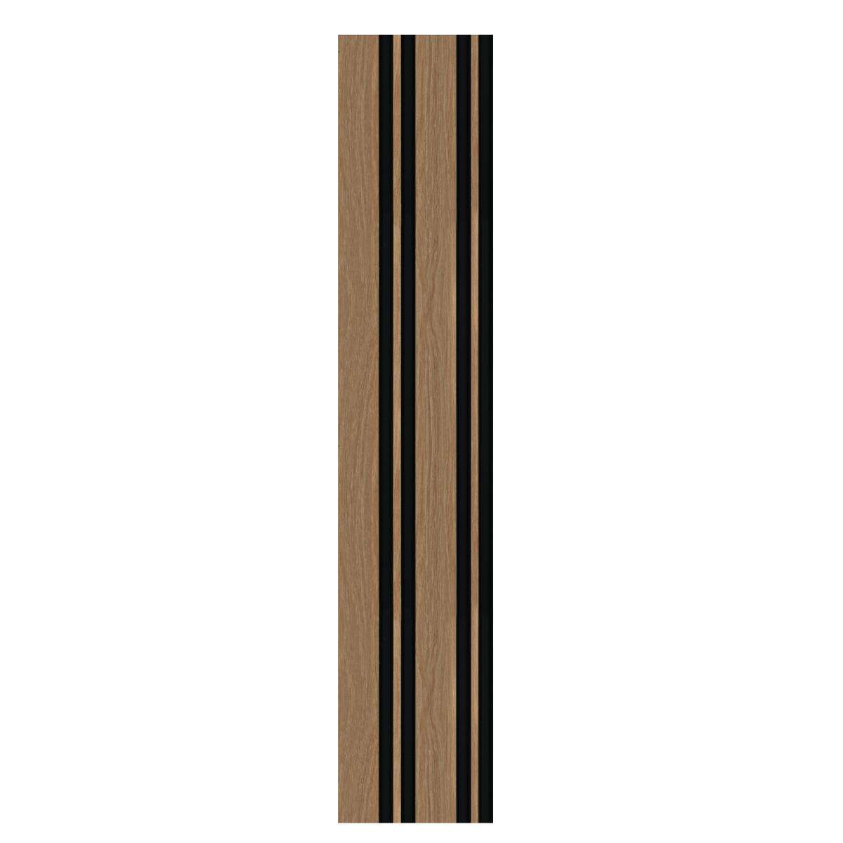 Praktiker akusztikus falipanel – natúr tölgy, aszimmetrikus mintázattal, 250 × 12,2 × 1,2 cm