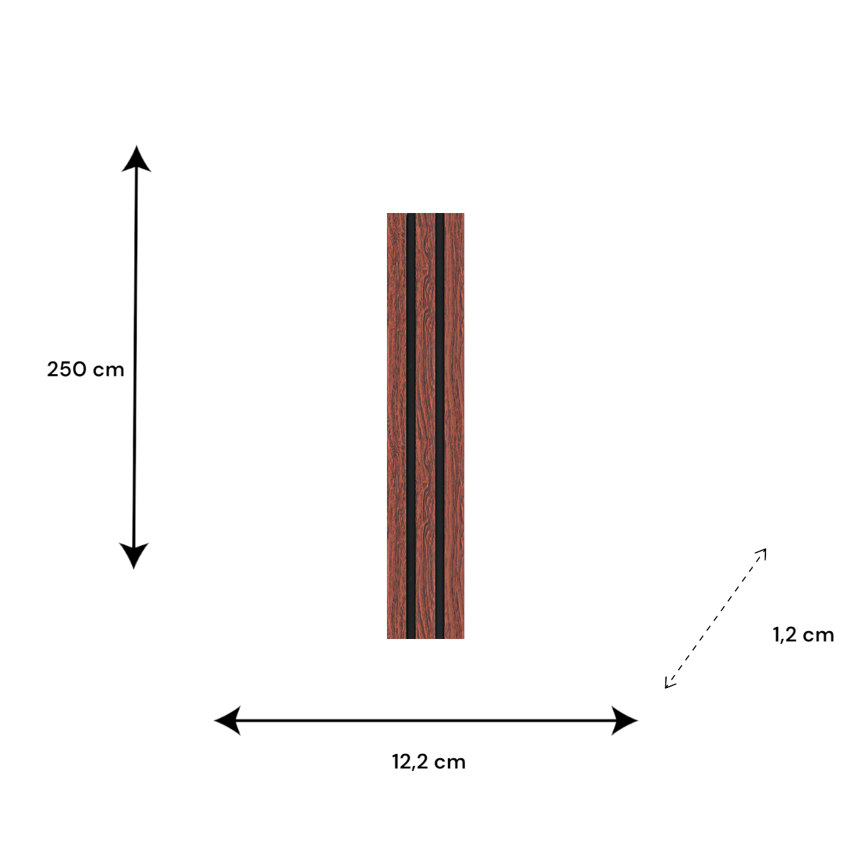 Méret: 250 × 12,2 × 1,2 cm