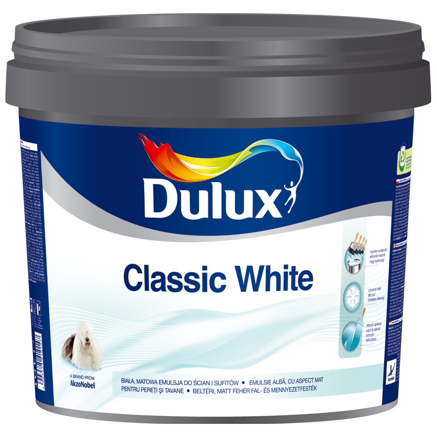 Dulux Classic White – a fehér falak klasszikus eleganciája, megbízható minőségben.