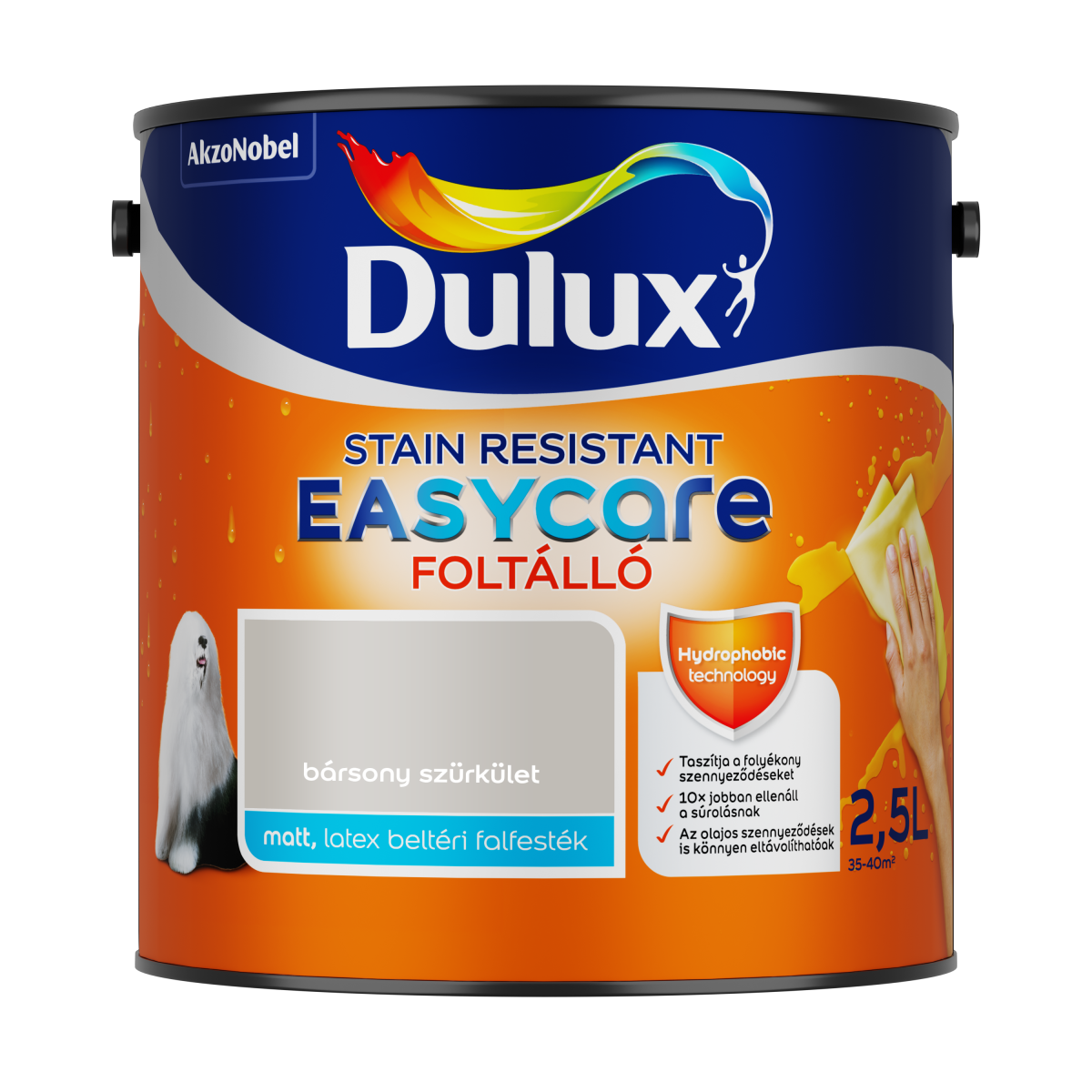 Dulux EasyCare beltéri falfesték 2,5 l – Bársony szürkület színű, foltálló, dörzsálló, matt felület