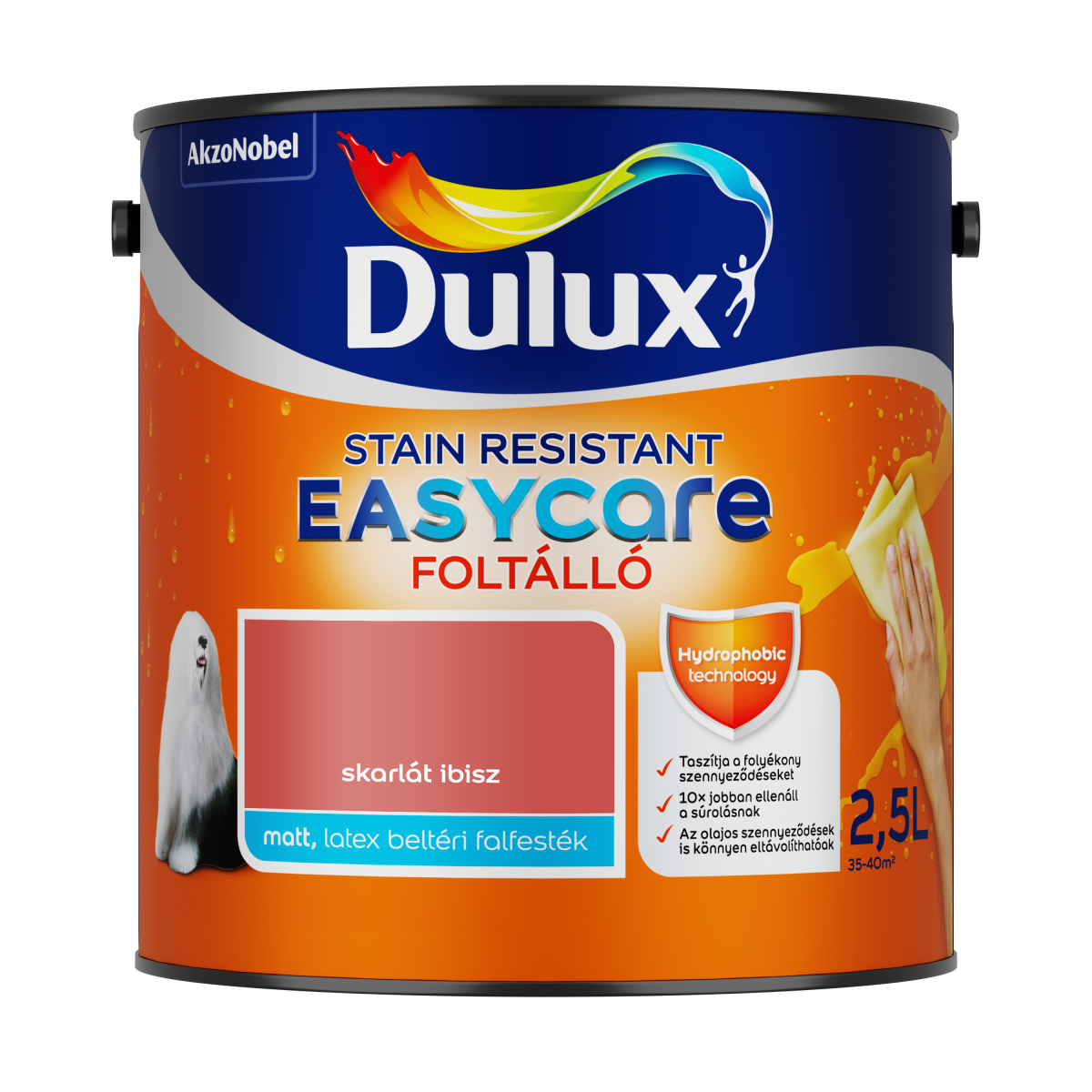 Dulux EasyCare beltéri falfesték 2,5 l – Skarlát íbisz színű, foltálló, dörzsálló, matt felület