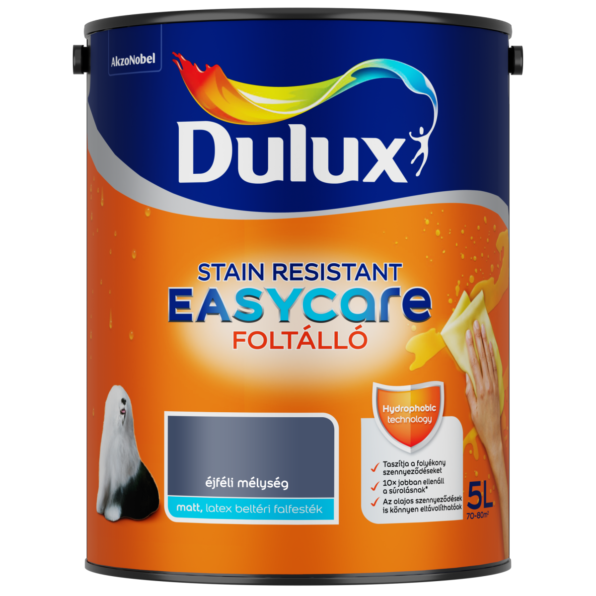 Dulux EasyCare beltéri falfesték 5 l – Éjféli mélység színű, foltálló, dörzsálló, matt felület