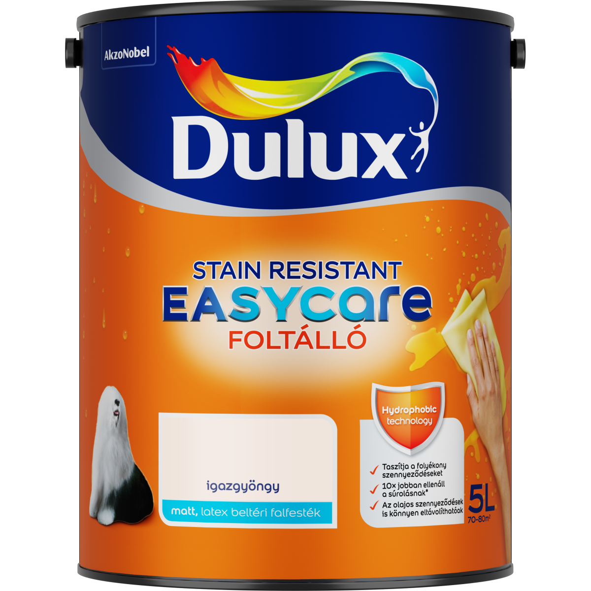 Dulux EasyCare beltéri falfesték 5 l – Igazgyöngy színű, foltálló, dörzsálló, matt felület