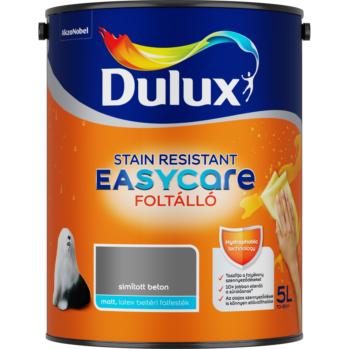 Dulux EasyCare beltéri falfesték 5 l – Simított beton színű, foltálló, dörzsálló, matt felület