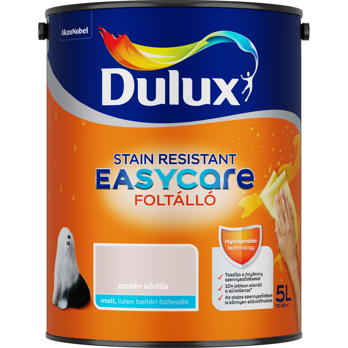 Dulux EasyCare beltéri falfesték 5 l – Szatén köntös színű, foltálló, dörzsálló, matt felület