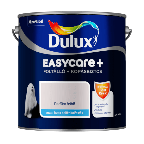 Dulux EasyCare+ foltálló beltéri falfesték 2,5 l – Parfüm felhő színű, matt felület