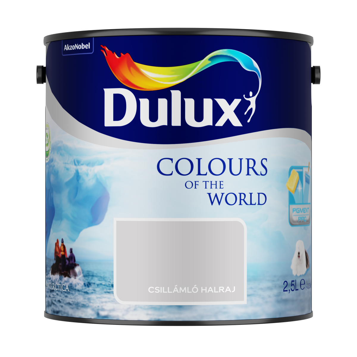 A Dulux „Csillámló Halraj” árnyalata modern, letisztult világosszürke tónust ad a térnek, amely időtálló és könnyen kombinálható színvilágot biztosít bármely helyiségben. A latex alapú, matt emulzió csepegésmentesen hordható fel, így tisztább és gyorsabb munkavégzést kínál. A Nagyvilág Színei termékcsalád Pigment Pro formulája kiváló minőségű pigmenteket tartalmaz optimális koncentrációban, amely kiemelkedő fedőképességet, tartósabb színeket és jó mosásállóságot nyújt. A festett felületről a szennyeződések, pecsétfoltok könnyen eltávolíthatók, miközben a szín megőrzi eredeti megjelenését.