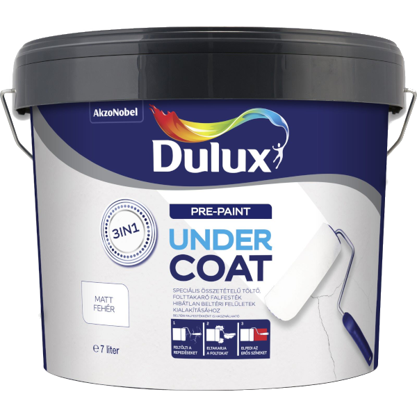 A Dulux UnderCoat 3in1 töltő, folttakaró beltéri falfestékkel tökéletes, repedés és foltmentes, tartós falfelületet alakíthat ki festés előtt. A megszáradt bevonat diszperziós falfestékkel átfesthető, de kisebb igénybevételű helyiségekben fehér falfestékként önállóan is alkalmazható. A bevonat rugalmas összetevőinek köszönhetően követi a fal természetes mozgását és hosszú ideig megakadályozza repedések újbóli megjelenését. A speciális szennyeződés blokkoló elemek eltakarják az előforduló beázás, pára, nikotin, ceruza foltokat. Kiemelkedő fedőképessége lehetővé teszi az erős színek elfedését átfestés előtt.