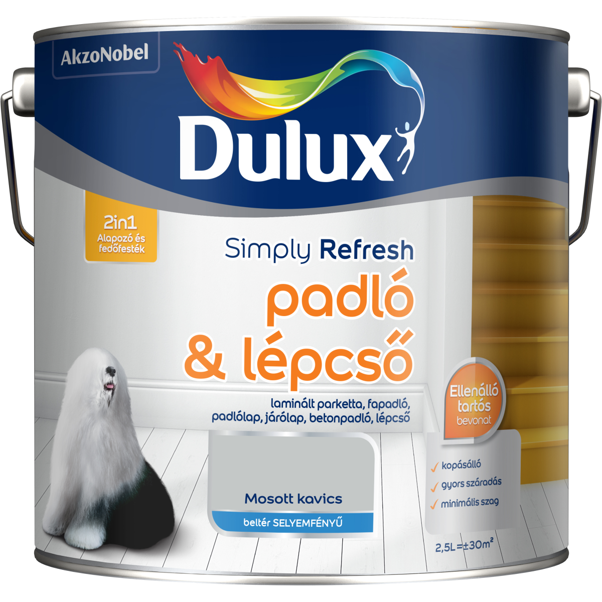 Dulux Simply Refresh 2in1 alapozó és fedő festék, padló és lépcső, mosott kavics, 2,5l