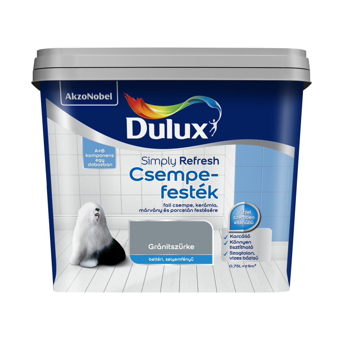 Dulux Simply Refresh csempefesték – gránitszürke 0,75 l – Selyemfényű, tartós bevonat mázas és nem mázas csempék felújításához