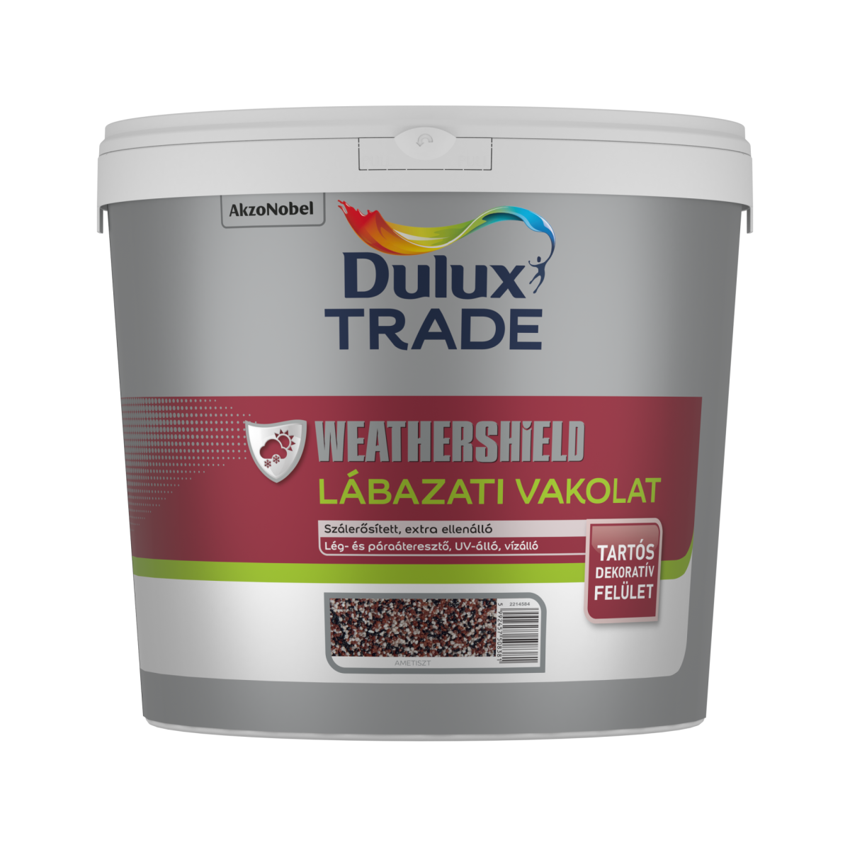 A Dulux Trade Weathershield Vakolat kiváló minőségű dekoratív bevonat homlokzatok és egyéb kültéri falfelületek díszítésére és védelmére. A szilikonadaléknak köszönhetően a termék feldolgozási tulajdonságai kiválóak, a kialakított felület sokáig megőrzi rugalmasságát. Megvédi a felületet a környezeti hatások (csapadék, pára, hőingadozás, UV sugárzás) károsító hatásaitól. A szálerősítés megnöveli a bevonat ellenállóképességét a mechanikai hatásokkal szemben, megelőzi a hajszál-repedések kialakulását. Alkalmazható hőszigetelő rendszereken, hagyományos vakolatokon, beton és egyéb ásványi felületeken, valamint tapaszokon és szerves kötőanyagú simítótapaszokon. Hőszigetelő rendszerek esetén vegye figyelembe a rendszer gyártójának műszaki előírásait! Kérje szaktanácsadónk segítségét a már előzetesen díszítő vakolattal ellátott (pl. kőporos) falfelületek felújítása előtt. Gyermekektől elzárva tartandó.