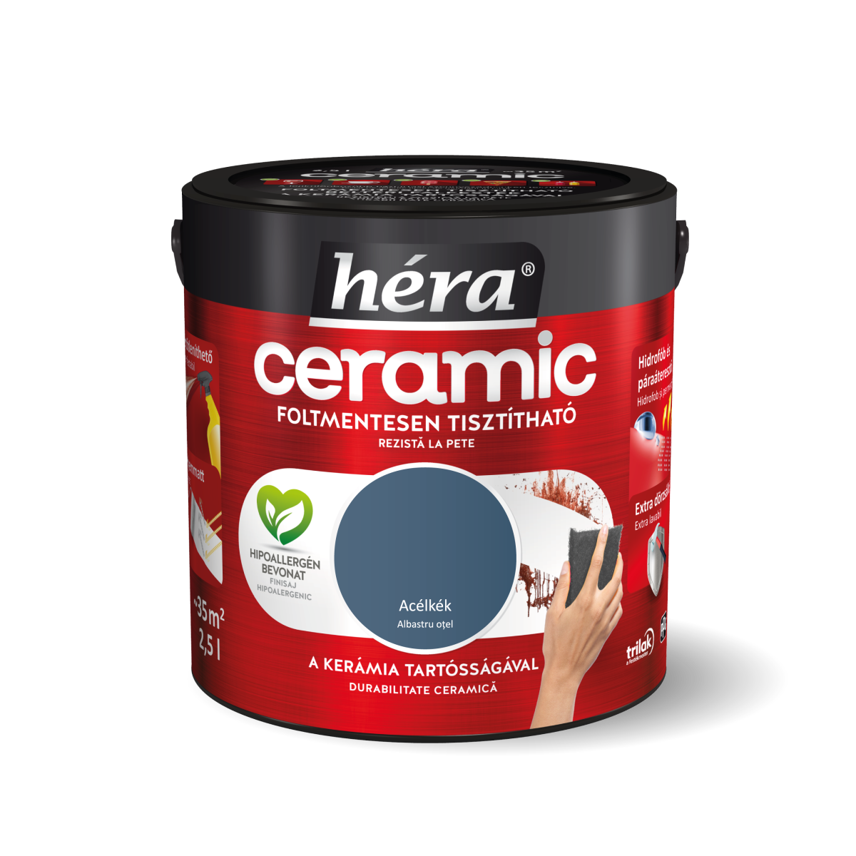 Héra Ceramic beltéri falfesték 2,5 l – Acélkék színű, foltmentesen tisztítható, dörzsálló felület