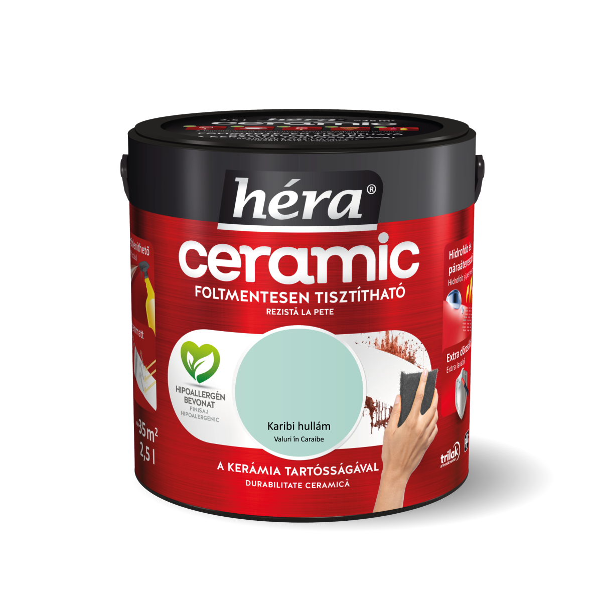 Héra Ceramic beltéri falfesték 2,5 l – Karibi hullám színű, foltmentesen tisztítható, extra dörzsálló felület