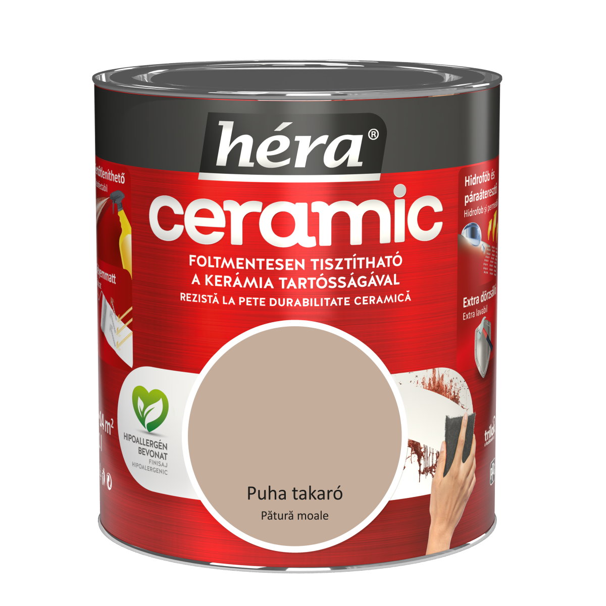 A Héra Ceramic „Puha takaró” beltéri falfesték lágy, harmonikus színével és kiemelkedő tisztíthatóságával ideális választás azok számára, akik hosszú távon is igényes, hipoallergén és könnyen karbantartható falfelületet szeretnének otthonukban.