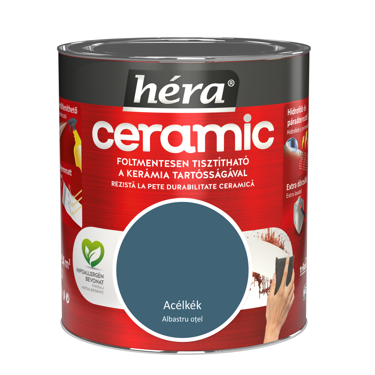 Héra Ceramic beltéri falfesték 1 l – Acélkék színű, foltmentesen tisztítható, dörzsálló felület