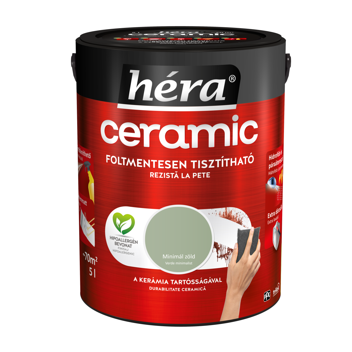 Héra Ceramic beltéri falfesték 5 l – Minimál zöld színű, foltmentesen tisztítható, dörzsálló felület