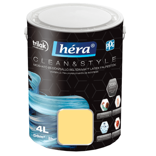 Dörzsálló, mosható, vízlepergető, foltálló beltéri színezett falfesték, beltéri használatra, mosható és súrolható, víz- és foltálló, matt felület és hipoallergén bevonat, könnyen felhordható.