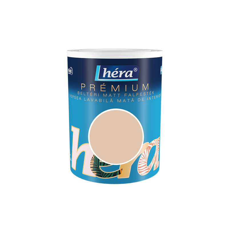 A Héra Prémium egy beltérben használható kiváló fedőképességű matt falfesték, amely egyenletes, esztétikus matt felületet biztosít. Színkeverőgép segítségével a gyári színek egymással keverhetőek, így több ezer színárnyalat kikeverhető. A festendő felület legyen hordképes, száraz, por- és szennyeződésmentes. Felhordása ecsettel, hengerrel vagy megfelelő szóróberendezéssel javasolt 2 rétegben. Airless szóráshoz javasolt beállítások: fúvóka: 0,018” – 0,026”, nyomás: 150 - 180 bar, fúvókaszög: 50 fok, hígítás: 2% víz. Száradási ideje kb. 2 óra, 4 óra elteltével átfesthető. A Héra Prémium falfesték felhasználásra készen kerül forgalomba. Használat előtt alaposan felkeverendő! 50 féle színben és 3 fajta kiszerelésben (1 liter, 2.5 liter, 5 liter) értékesítjük. A kép csak tájékoztató jellegű! A termék színei különbözhetnek a monitoron látottaktól. Színhelyes mintákért látogasson el áruházainkba, ahol személyesen válogathat változatos kínálatunkból.