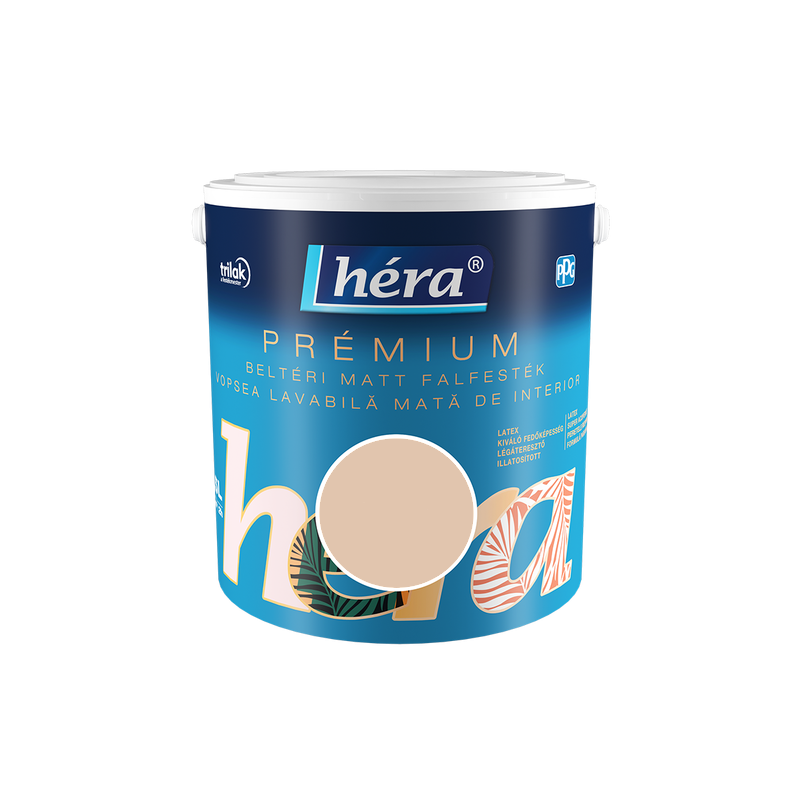 A Héra Prémium egy beltérben használható kiváló fedőképességű matt falfesték, amely egyenletes, esztétikus matt felületet biztosít. Színkeverőgép segítségével a gyári színek egymással keverhetőek, így több ezer színárnyalat kikeverhető. A festendő felület legyen hordképes, száraz, por- és szennyeződésmentes. Felhordása ecsettel, hengerrel vagy megfelelő szóróberendezéssel javasolt 2 rétegben. Airless szóráshoz javasolt beállítások: fúvóka: 0,018” – 0,026”, nyomás: 150 - 180 bar, fúvókaszög: 50 fok, hígítás: 2% víz. Száradási ideje kb. 2 óra, 4 óra elteltével átfesthető. A Héra Prémium falfesték felhasználásra készen kerül forgalomba. Használat előtt alaposan felkeverendő! 50 féle színben és 3 fajta kiszerelésben (1 liter, 2.5 liter, 5 liter) értékesítjük. A kép csak tájékoztató jellegű! A termék színei különbözhetnek a monitoron látottaktól. Színhelyes mintákért látogasson el áruházainkba, ahol személyesen válogathat változatos kínálatunkból.