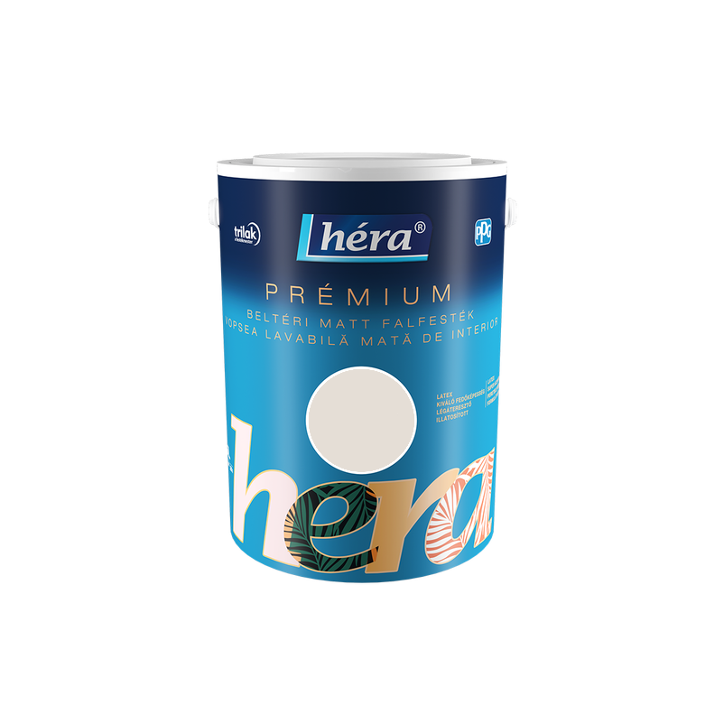 A Héra Prémium egy beltérben használható kiváló fedőképességű matt falfesték, amely egyenletes, esztétikus matt felületet biztosít. Színkeverőgép segítségével a gyári színek egymással keverhetőek, így több ezer színárnyalat kikeverhető. A festendő felület legyen hordképes, száraz, por- és szennyeződésmentes. Felhordása ecsettel, hengerrel vagy megfelelő szóróberendezéssel javasolt 2 rétegben. Airless szóráshoz javasolt beállítások: fúvóka: 0,018” – 0,026”, nyomás: 150 - 180 bar, fúvókaszög: 50 fok, hígítás: 2% víz. Száradási ideje kb. 2 óra, 4 óra elteltével átfesthető. A Héra Prémium falfesték felhasználásra készen kerül forgalomba. Használat előtt alaposan felkeverendő! 50 féle színben és 3 fajta kiszerelésben (1 liter, 2.5 liter, 5 liter) értékesítjük. A kép csak tájékoztató jellegű! A termék színei különbözhetnek a monitoron látottaktól. Színhelyes mintákért látogasson el áruházainkba, ahol személyesen válogathat változatos kínálatunkból.