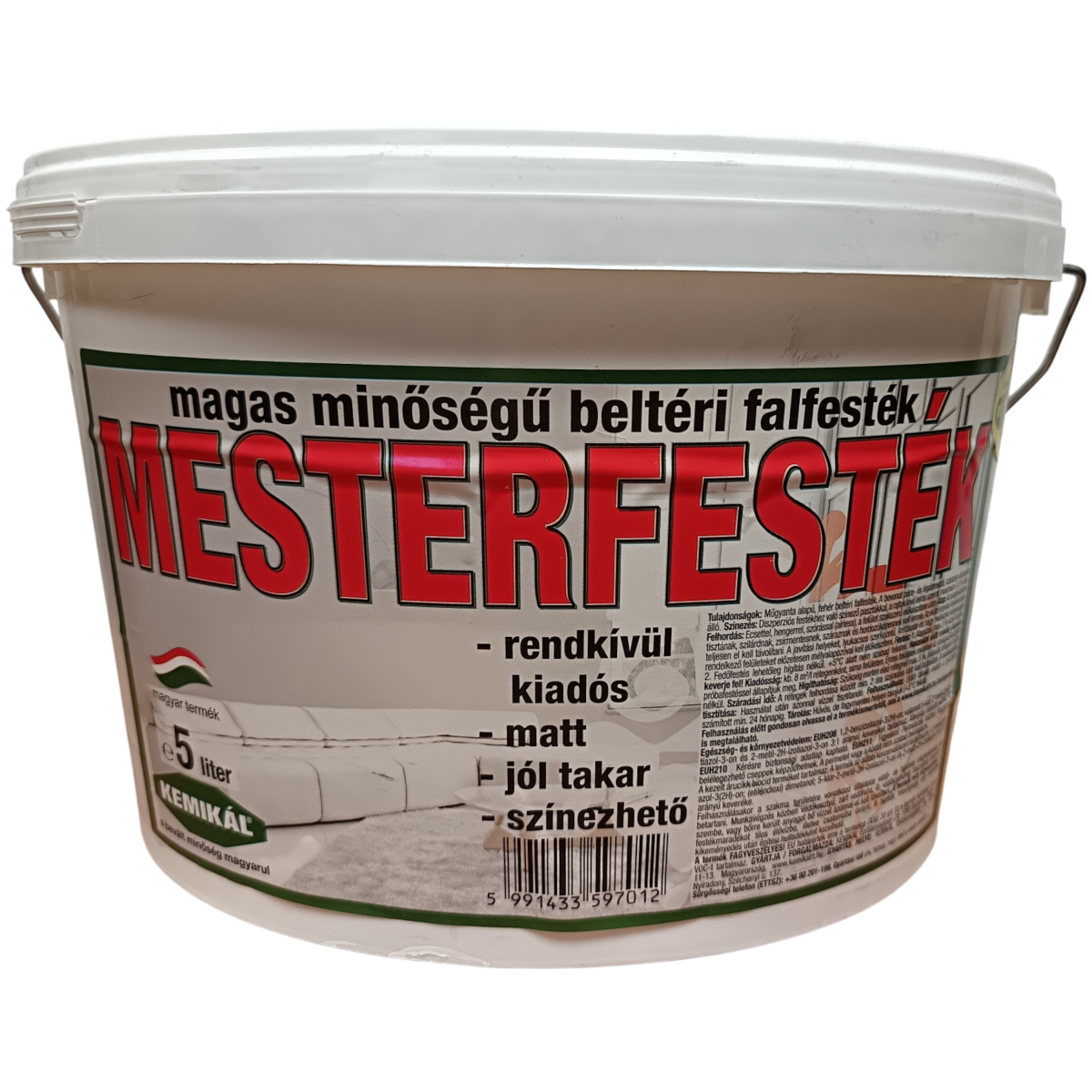 A Mesterfesték Beltéri Falfesték műgyanta alapú, vizes diszperziós festék, amely fehér pigmenteket, töltőanyagokat és minőségi adalékokat tartalmaz.
