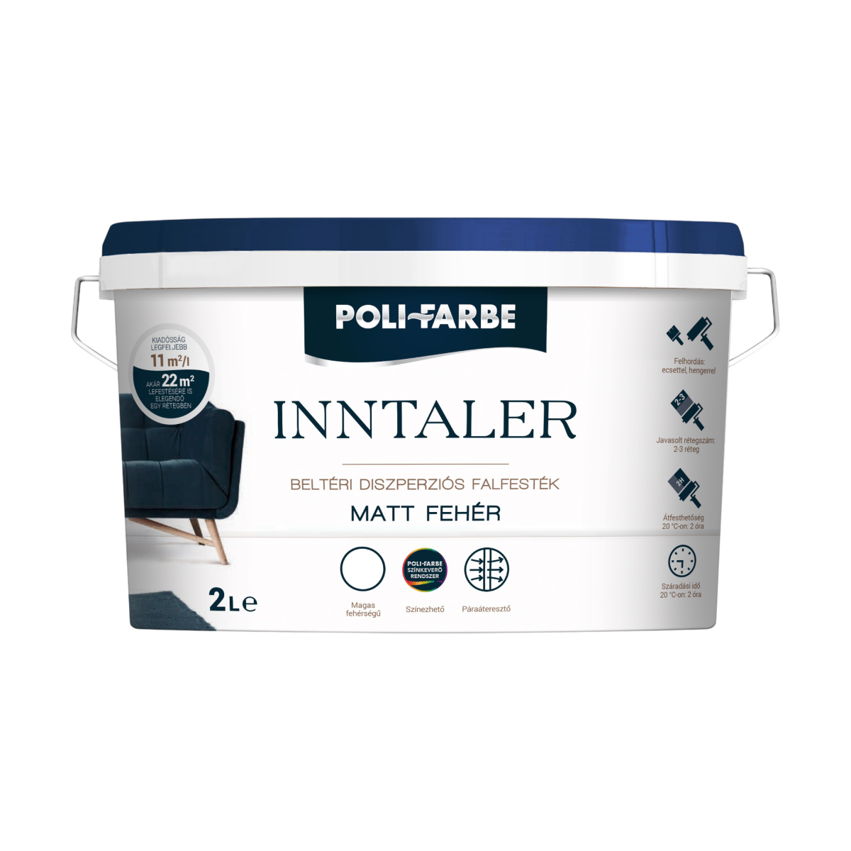 Az Inntaler Beltéri Falfesték különleges minőségű, illatosított beltéri diszperziós festék, amely tartós és esztétikus, matt felületet képez.