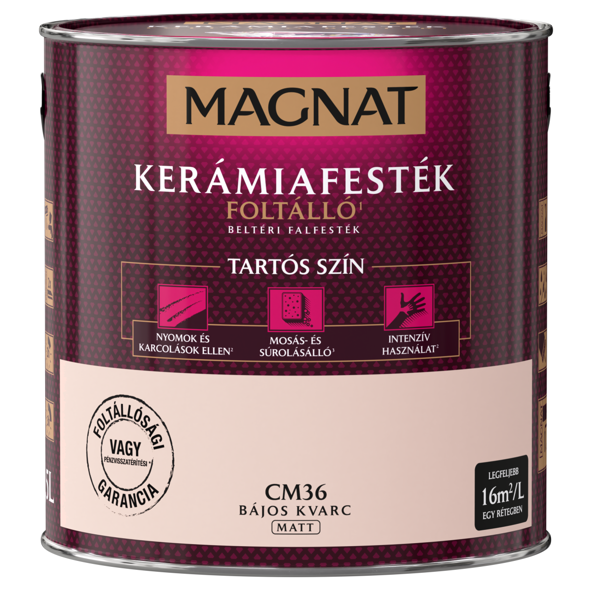 A Magnat kerámiafesték alkalmazható gipsz-, gipszkarton-, cement-, cement-mész vakolatokon, valamint üvegszálas tapétákon is. Ideális lakóhelyiségekbe, oktatási intézményekbe, egészségügyi terekbe és élelmiszertárolásra szolgáló helyiségekbe (közvetlen érintkezés nélkül).