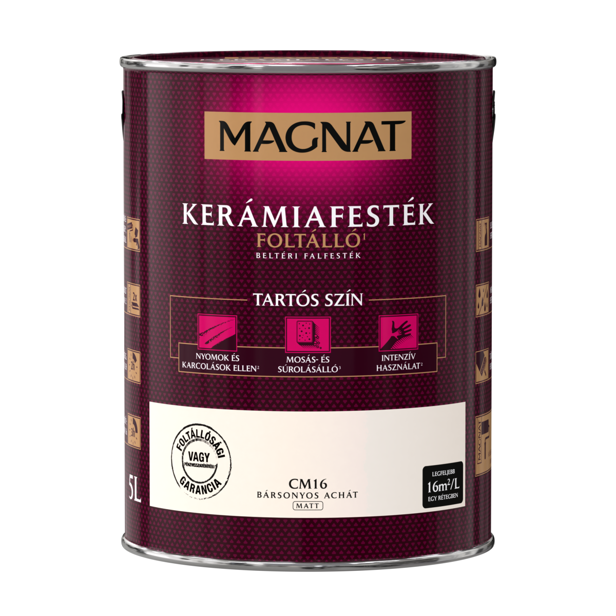 A Magnat kerámiafesték alkalmazható gipsz-, gipszkarton-, cement-, cement-mész vakolatokon, valamint üvegszálas tapétákon is. Ideális lakóhelyiségekbe, oktatási intézményekbe, egészségügyi terekbe és élelmiszertárolásra szolgáló helyiségekbe (közvetlen érintkezés nélkül).