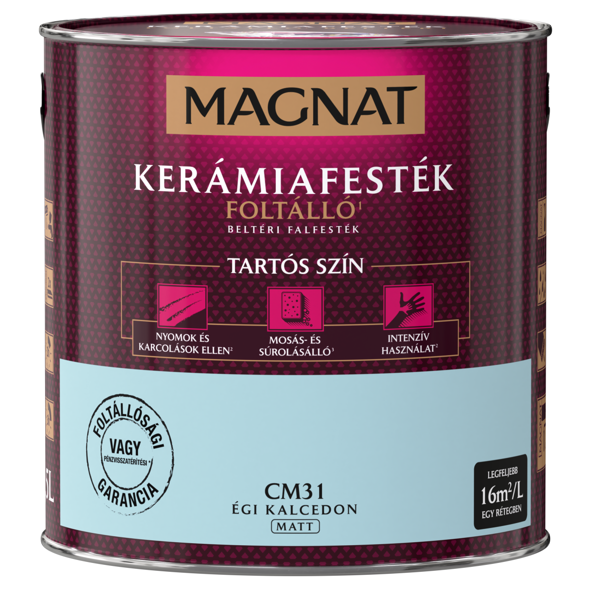 A Poli-Farbe Magnat egy harmadik generációs, innovatív kerámiafesték, amely a Ceramic System technológia révén kiváló fedőképességet, kiemelkedő tartósságot és hosszan megőrzött színhűséget biztosít. A kerámia-adalékok, valamint a legjobb minőségű gyanták és pigmentek kombinációja révén a bevonat rendkívül ellenálló a mosással, súrolással és fertőtlenítőszerekkel szemben, így a falak hosszú ideig megőrzik tisztaságukat és esztétikus megjelenésüket.