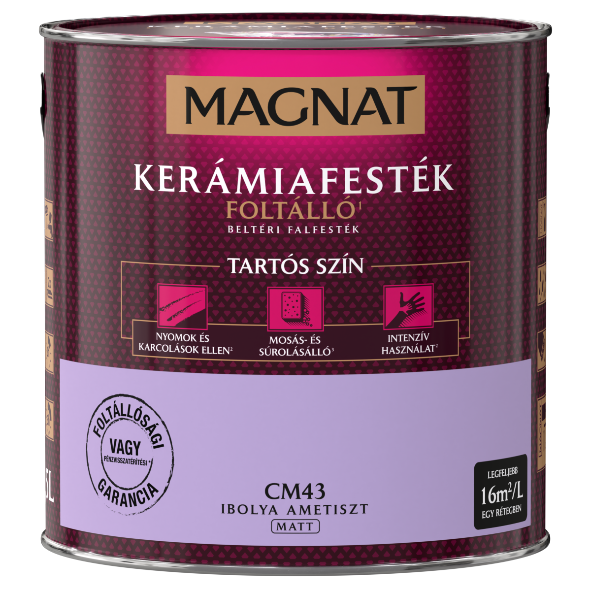 A Magnat kerámiafesték alkalmazható gipsz-, gipszkarton-, cement-, cement-mész vakolatokon, valamint üvegszálas tapétákon is. Ideális lakóhelyiségekbe, oktatási intézményekbe, egészségügyi terekbe és élelmiszertárolásra szolgáló helyiségekbe (közvetlen érintkezés nélkül).